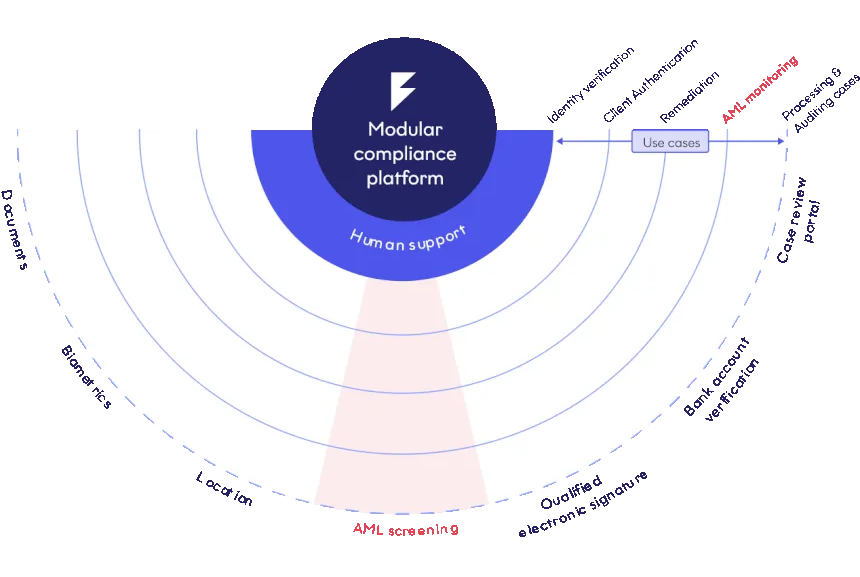 Free your compliance team from inefficient, legacy processes. Empower them with flexible, modular KYC & AML solutions that you can configure as needed. Streamline your operations and say goodbye to analogue record-keeping and complex manual processes. Choose from one or multiple solutions, integrate with a single API & tailored deployment.